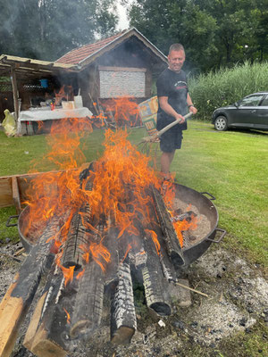 Und zwar zu einem Grillfest bei Klaus im Ried.